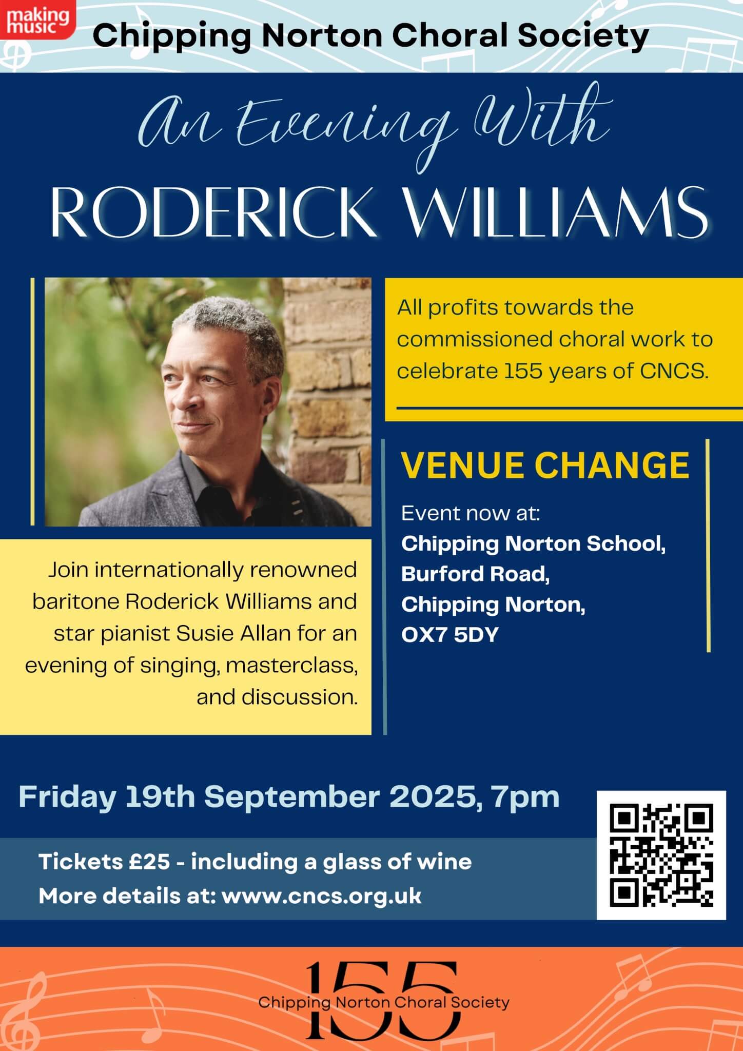 Join world-class baritone and composer Roderick Williams for an unforgettable evening. As part of our fundraising campaign for the piece we’re commissioning to celebrate our 155th Anniversary, Roderick Williams will be joined by Susie Allan on piano to give an evening of entertainment.